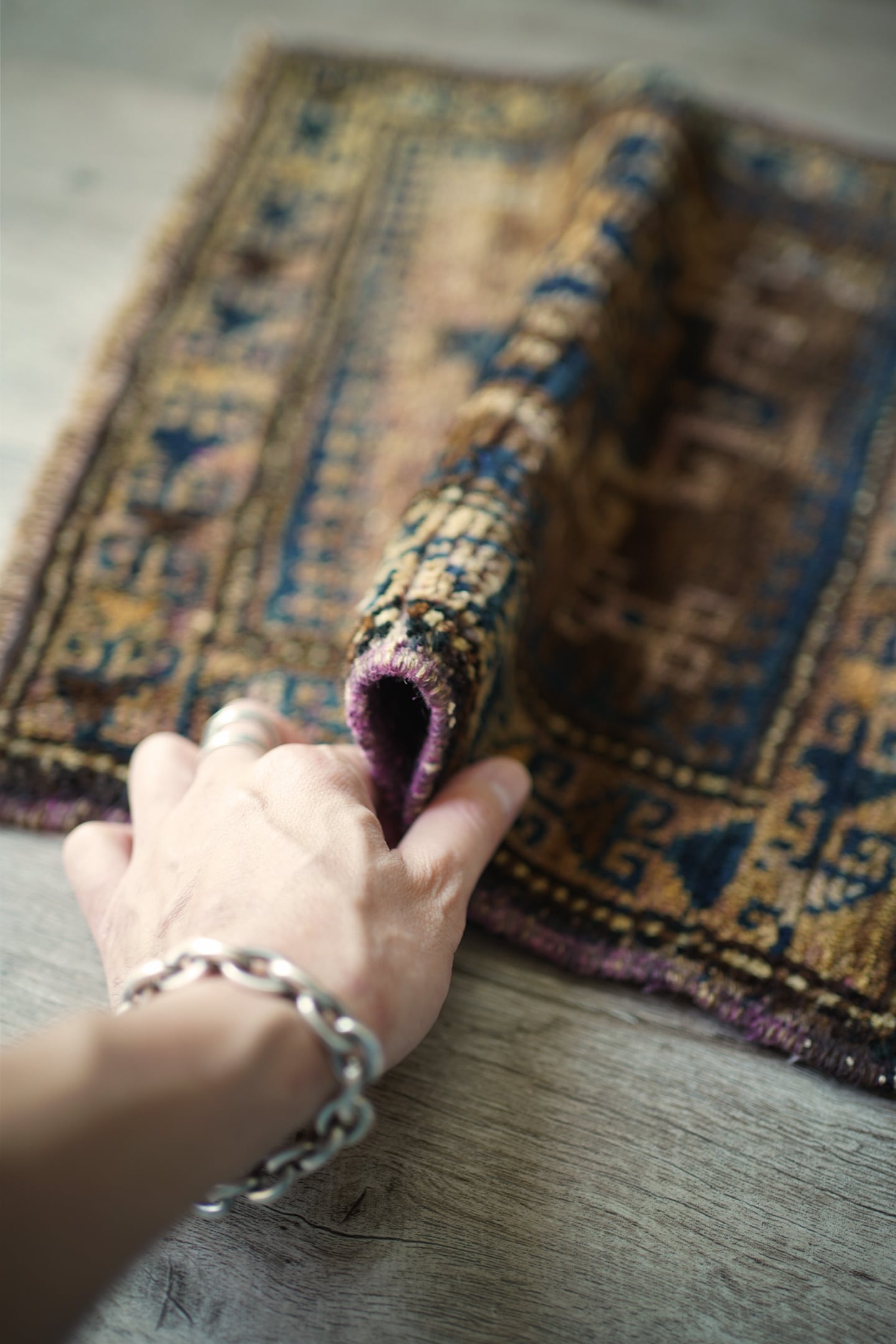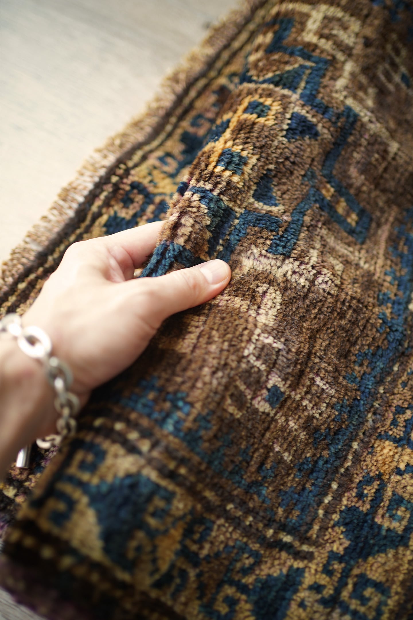 ※ 手織りのヴィンテージのため、粉状の繊維が落ちたり、ウールの抜けが発生することがございます。
