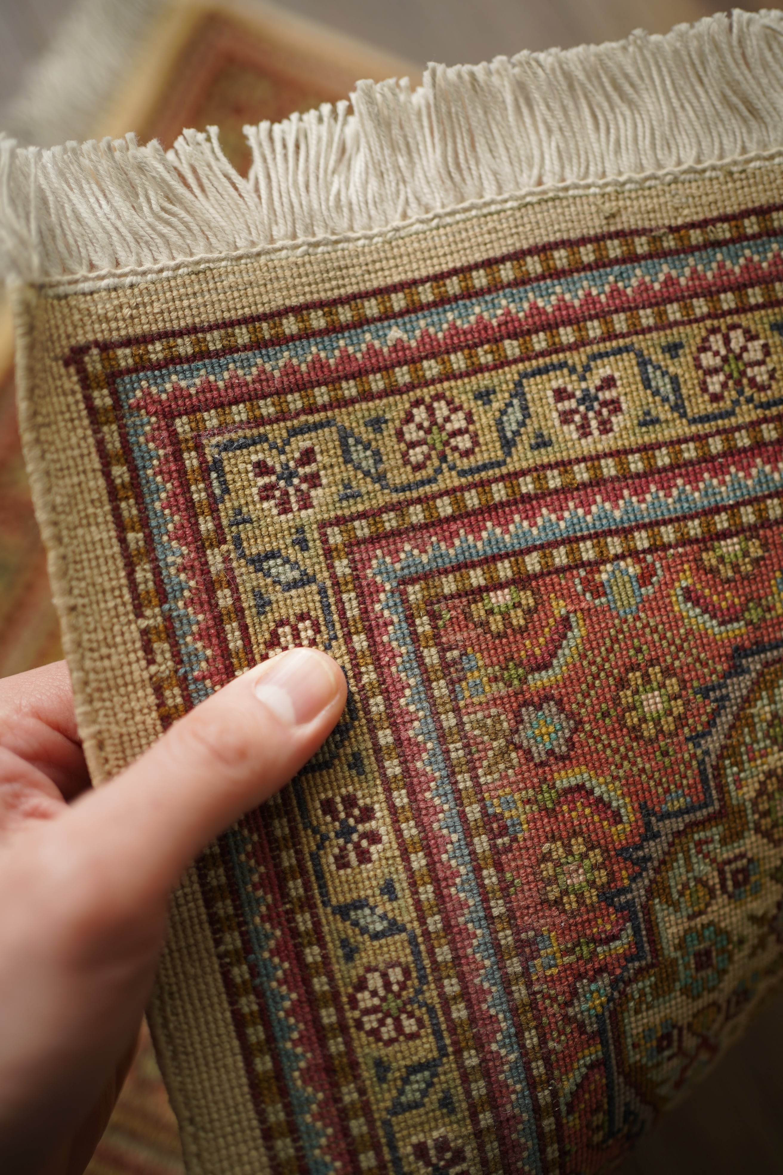 ※ 手織りのヴィンテージのため、粉状の繊維が落ちたり、ウールの抜けが発生することがございます。