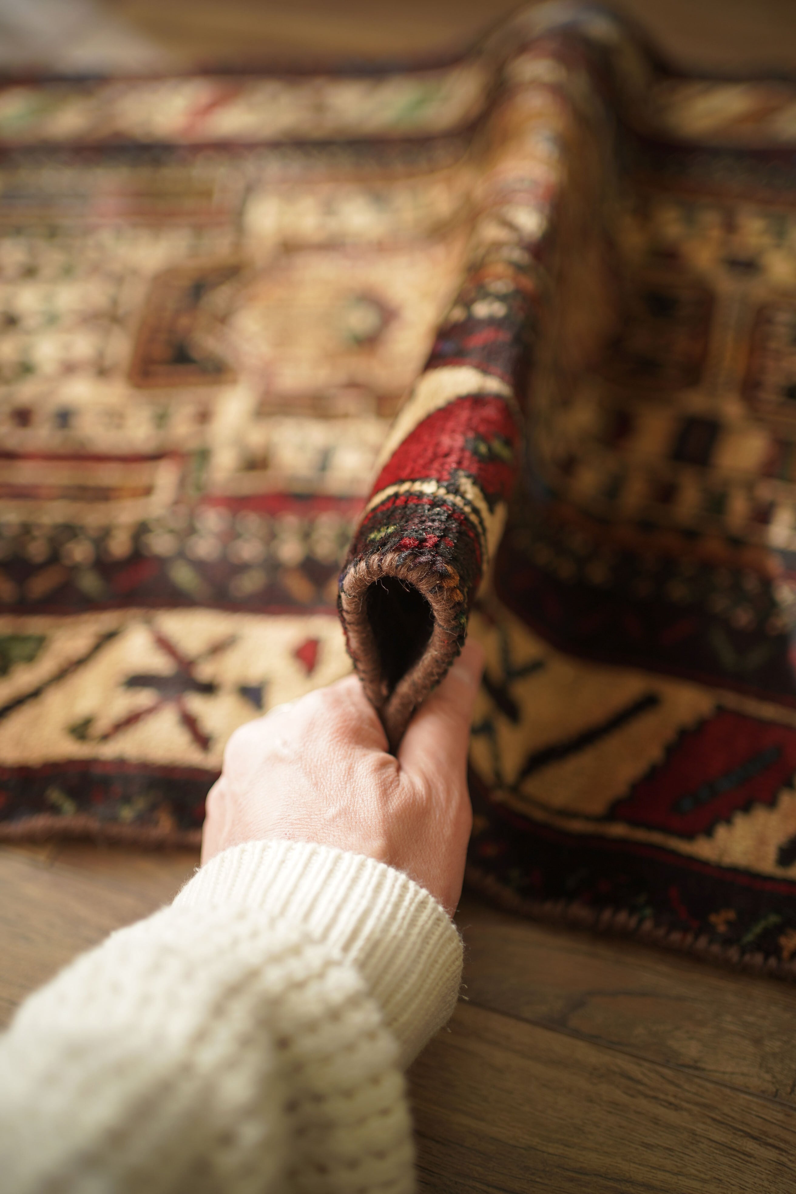 ※ 手織りのヴィンテージのため、粉状の繊維が落ちたり、ウールの抜けが発生することがございます。