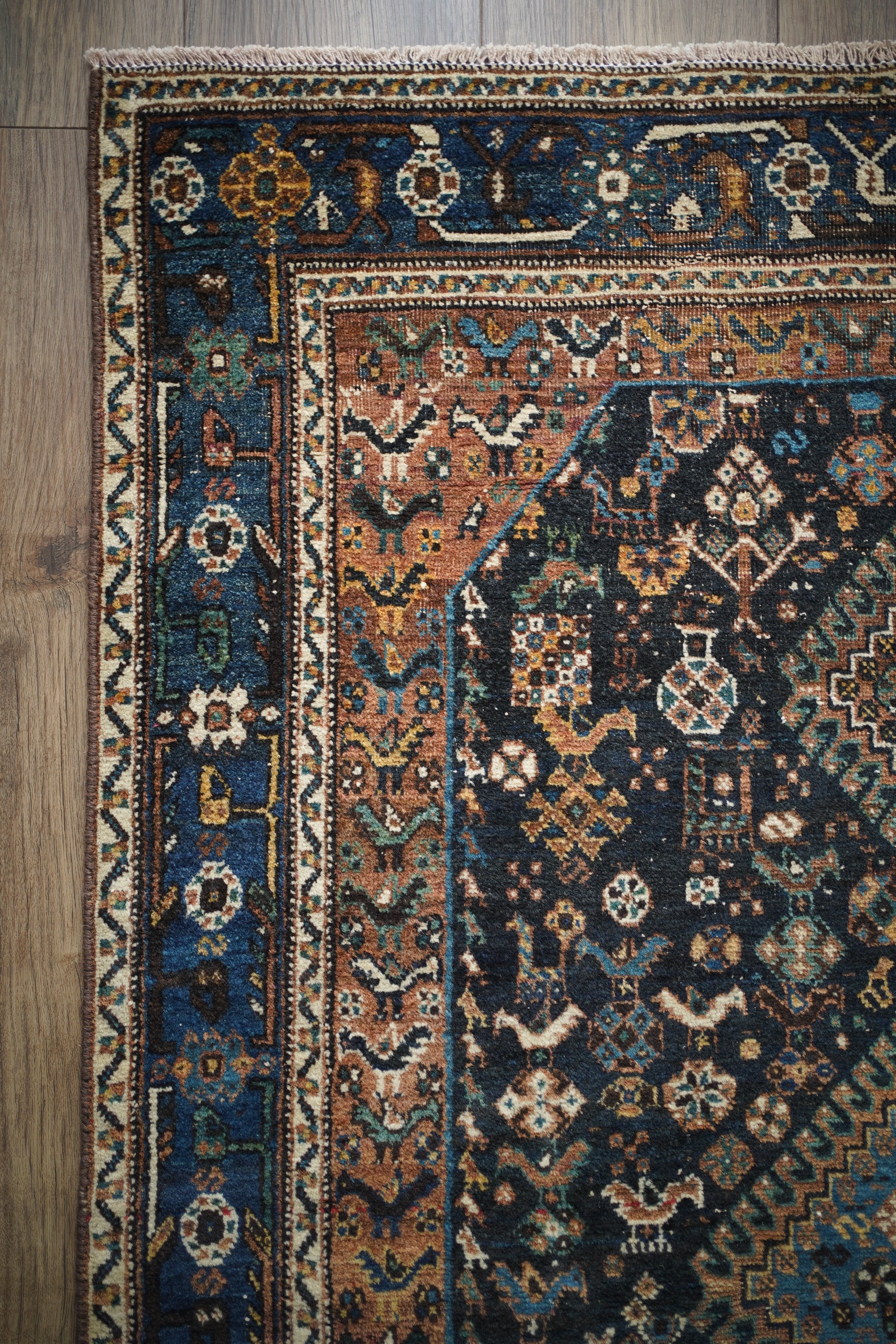 約100年前にイラン南部のハムセ連合によって織られたアンティークラグです。