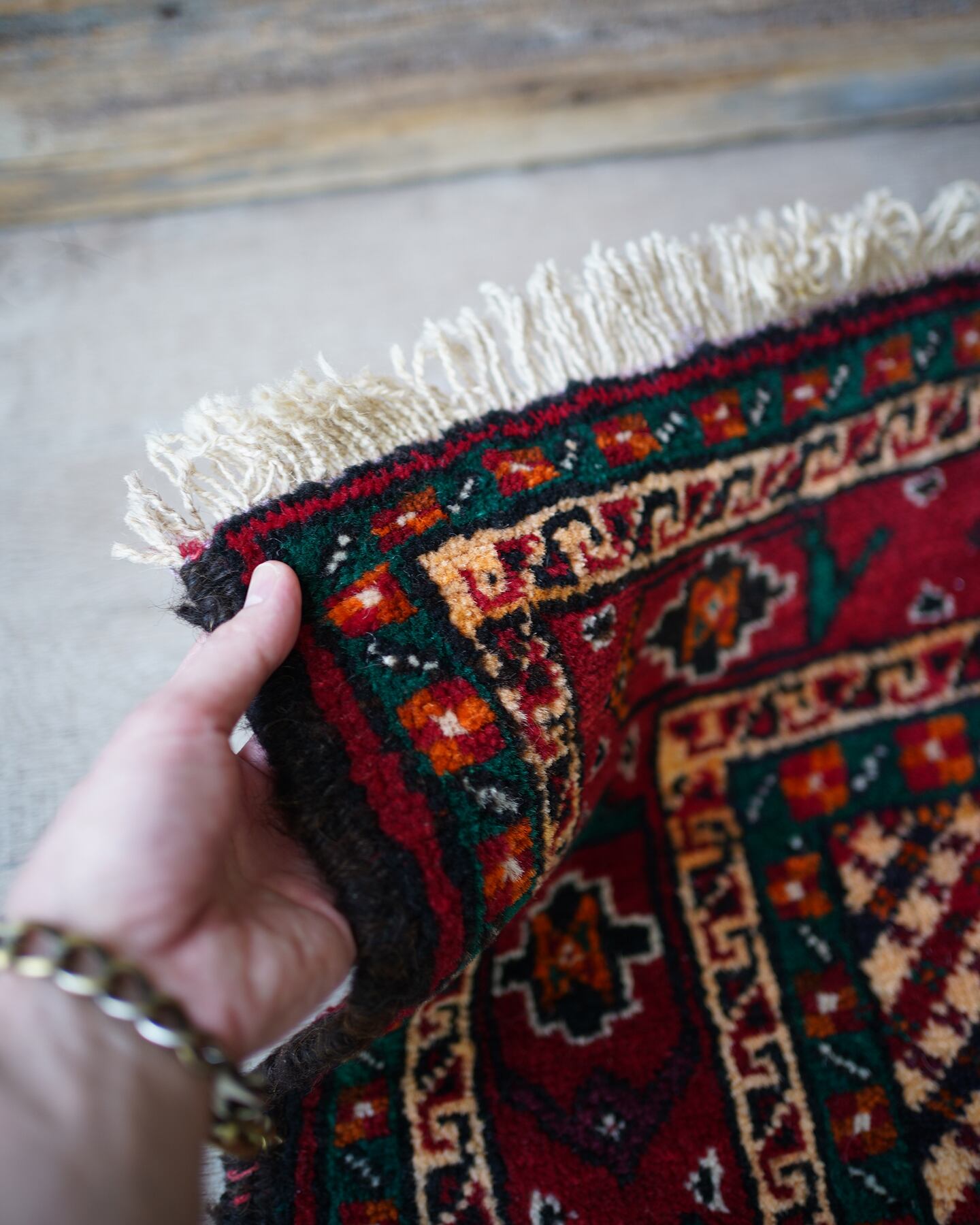 ※ 手織りのヴィンテージのため、粉状の繊維が落ちたり、ウールの抜けが発生することがございます。