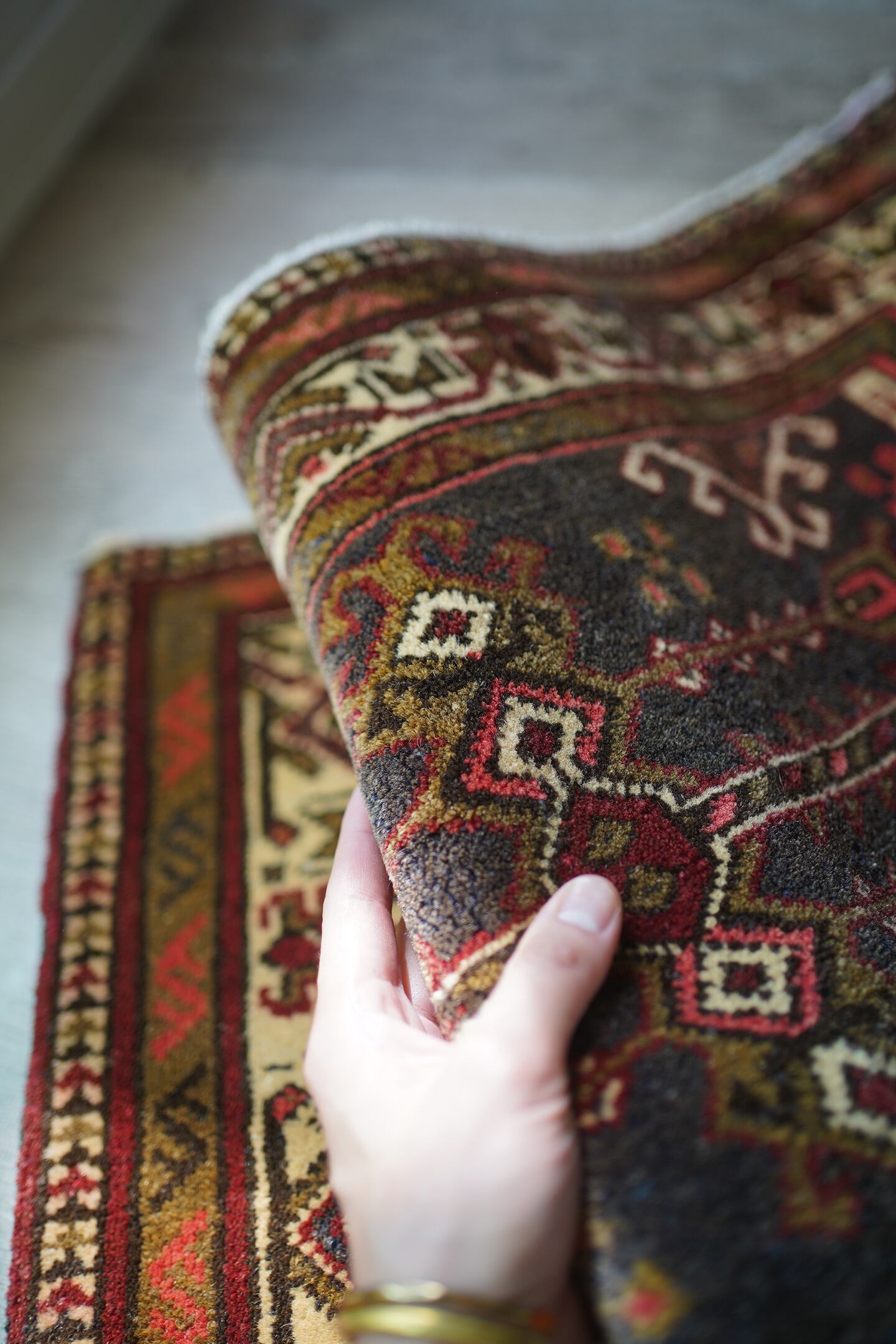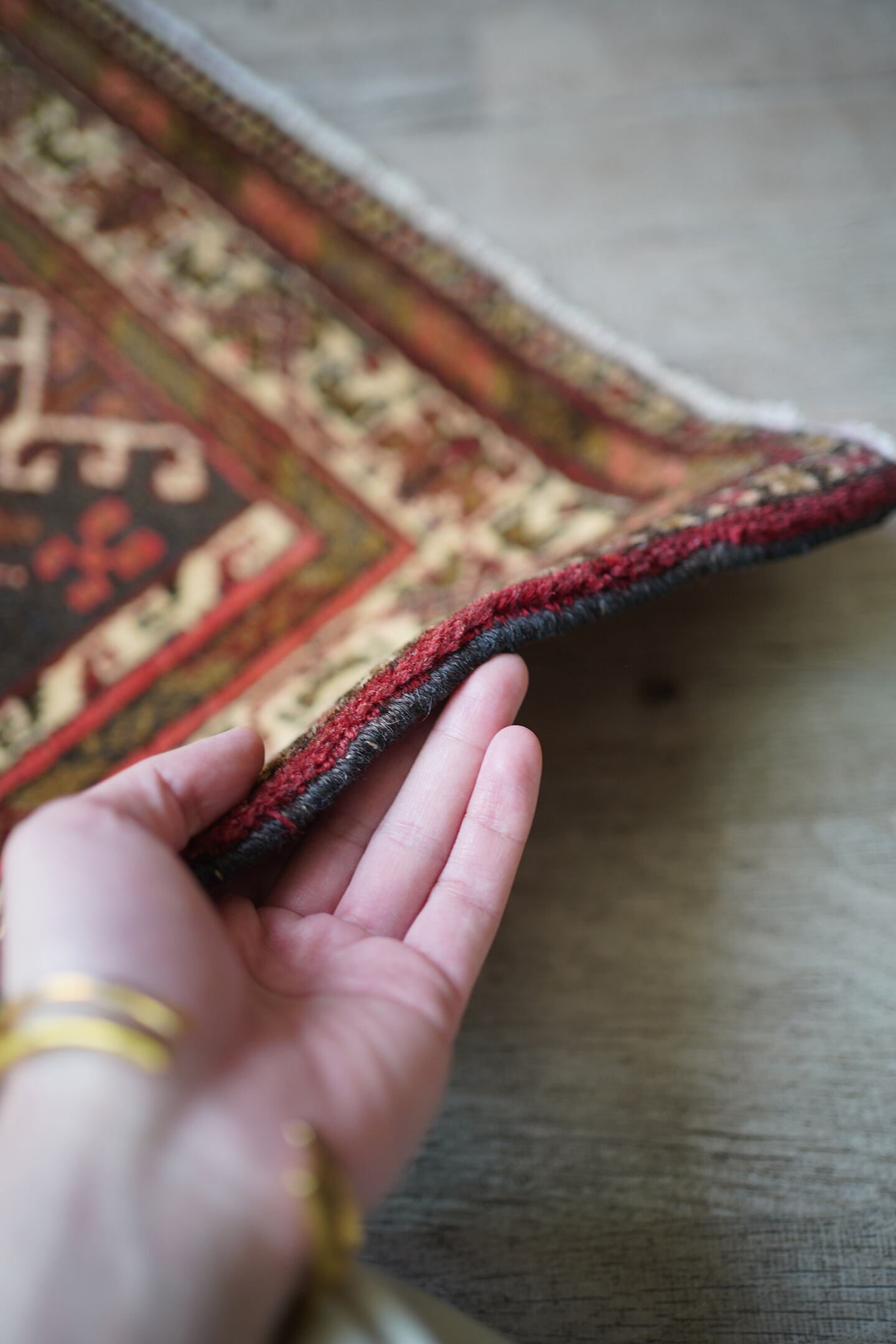 ※ 手織りのヴィンテージのため、粉状の繊維が落ちたり、ウールの抜けが発生することがございます。