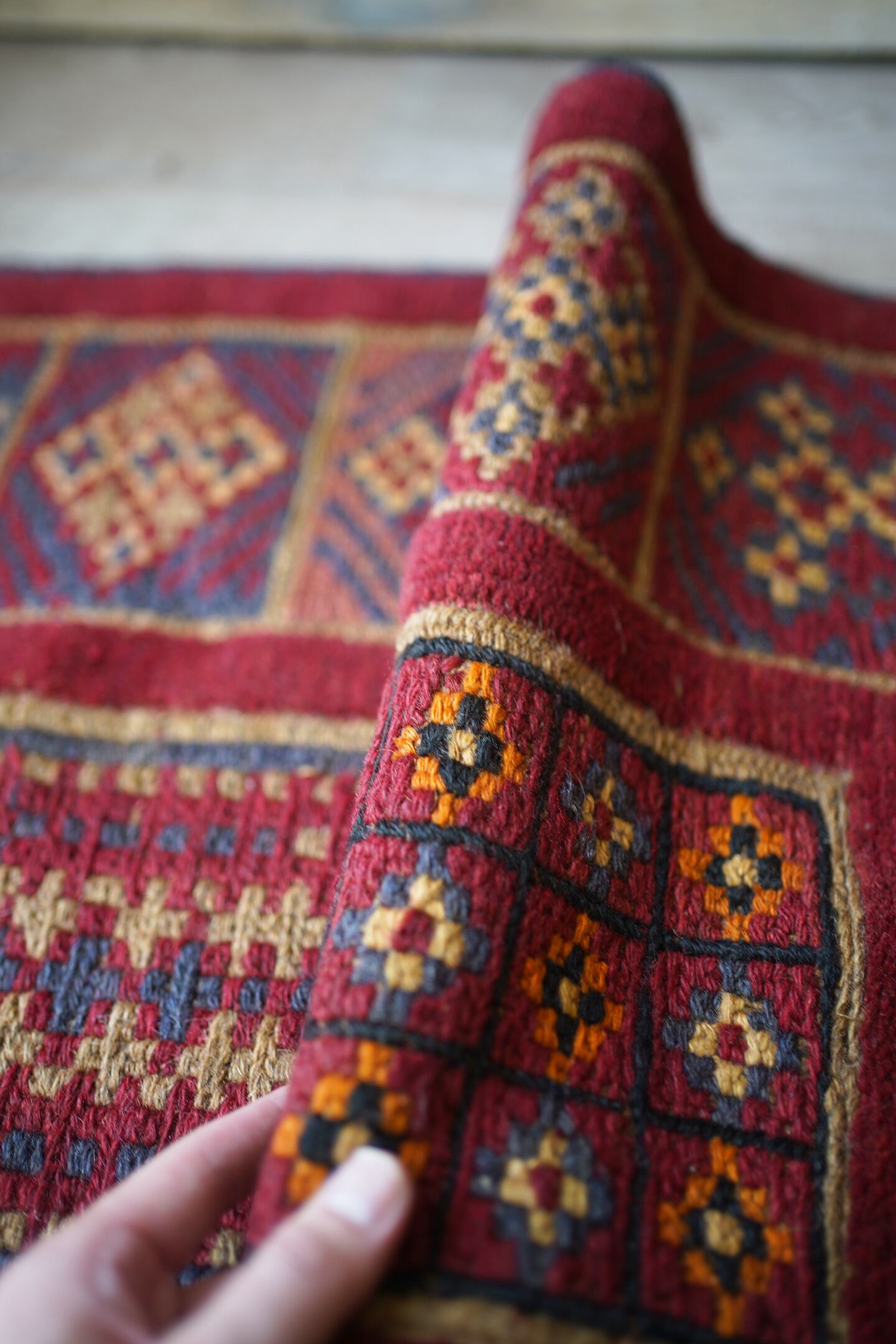 ※ 手織りのヴィンテージのため、粉状の繊維が落ちたり、ウールの抜けが発生することがございます。