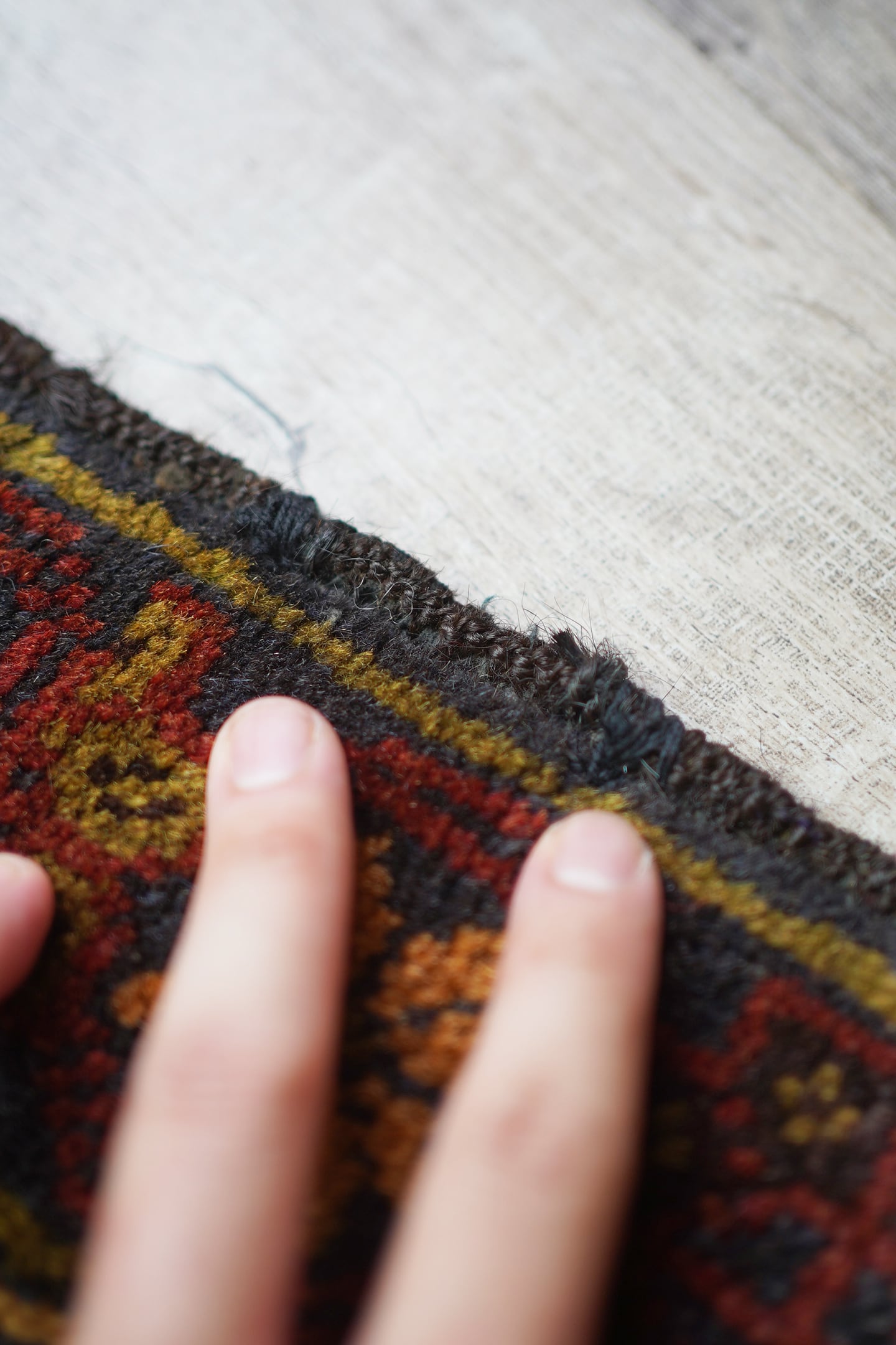 ※ 手織りのヴィンテージのため、粉状の繊維が落ちたり、ウールの抜けが発生することがございます。