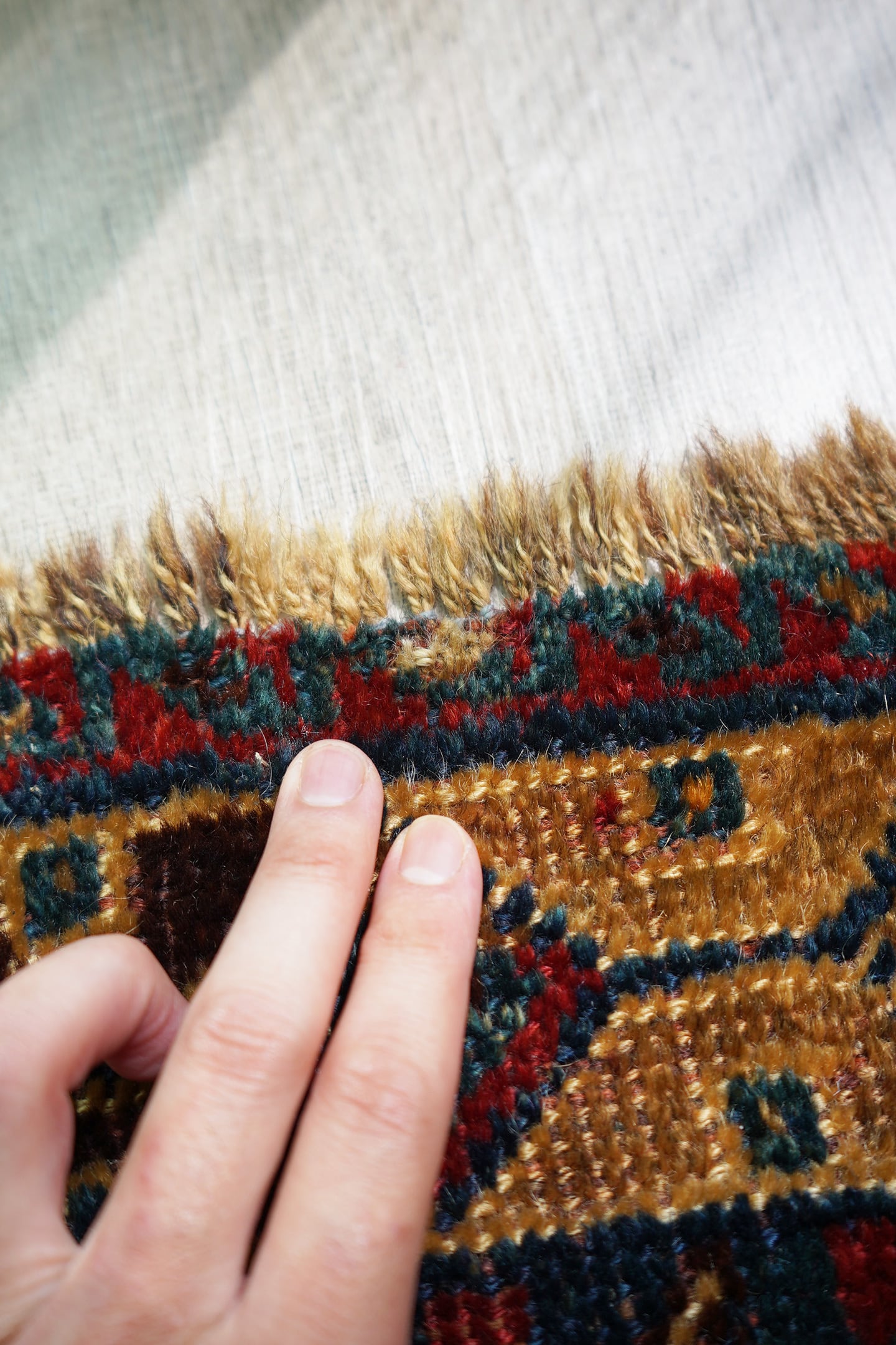 ※ 手織りのヴィンテージのため、粉状の繊維が落ちたり、ウールの抜けが発生することがございます。