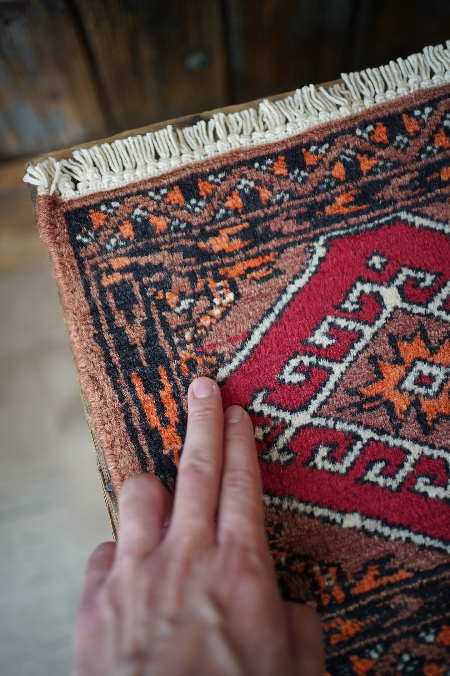 ※ 手織りのヴィンテージのため、粉状の繊維が落ちたり、ウールの抜けが発生することがございます。