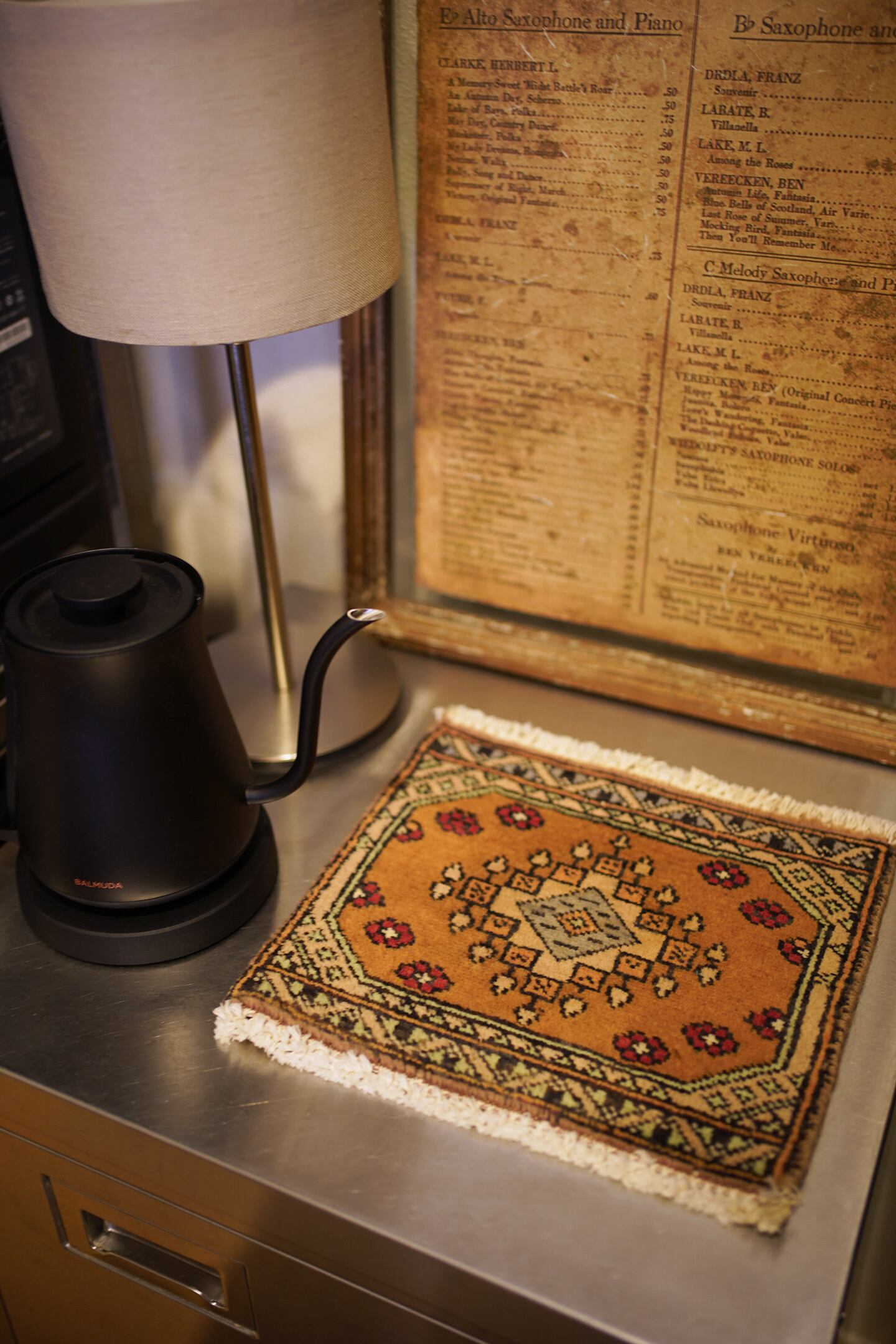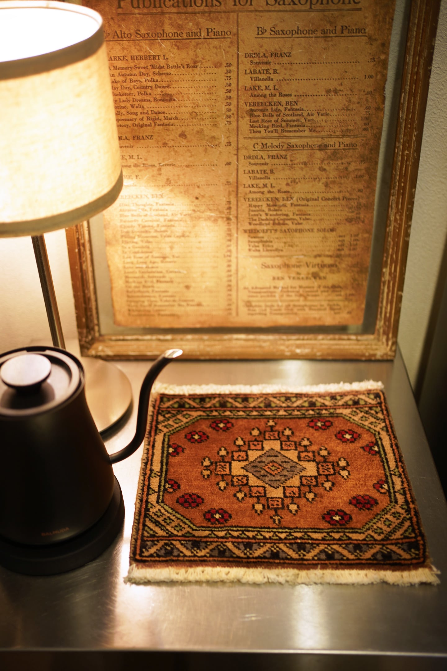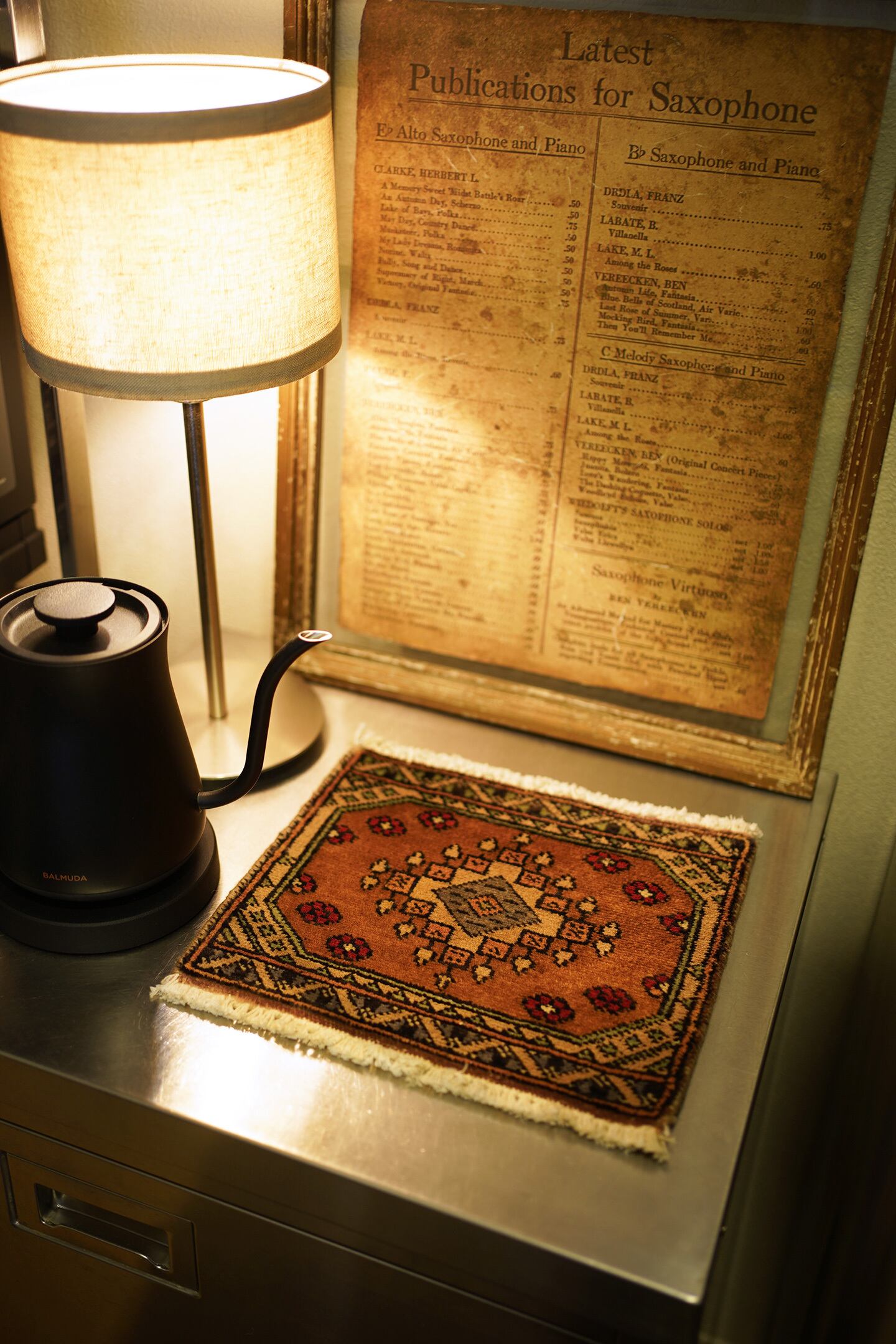 約30年前に織られたパキスタン産のミニラグです。配色はブラウン、グレー、薄いミントグリーン、ベージュ、赤など。厚みは5mm程度で、表面はサラふわっとした肌触りをしています。コンディションは良好です。棚やテーブルの上に敷いて、小物や花瓶などを乗せればお気に入りの空間がとってもオシャレに。タペストリーとして壁に飾っても素敵かと思います♪