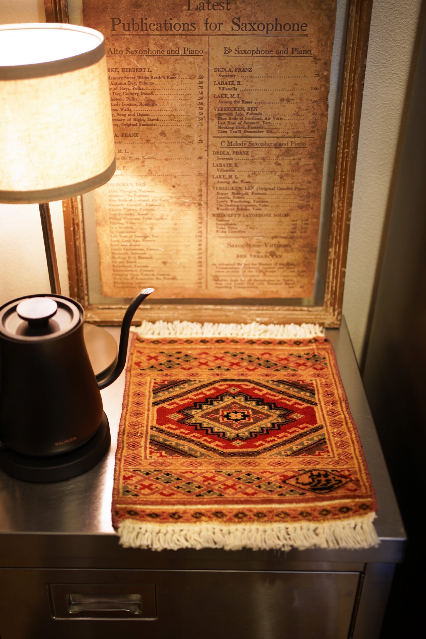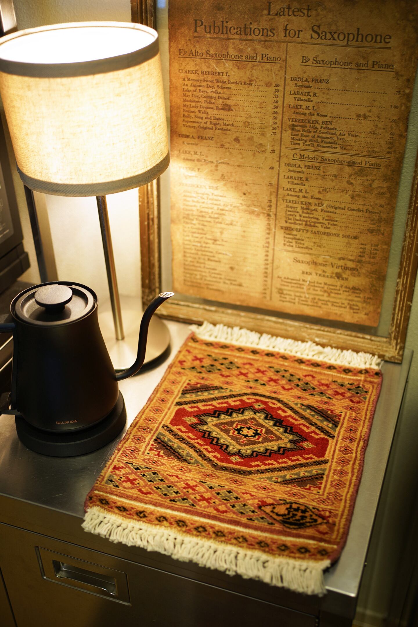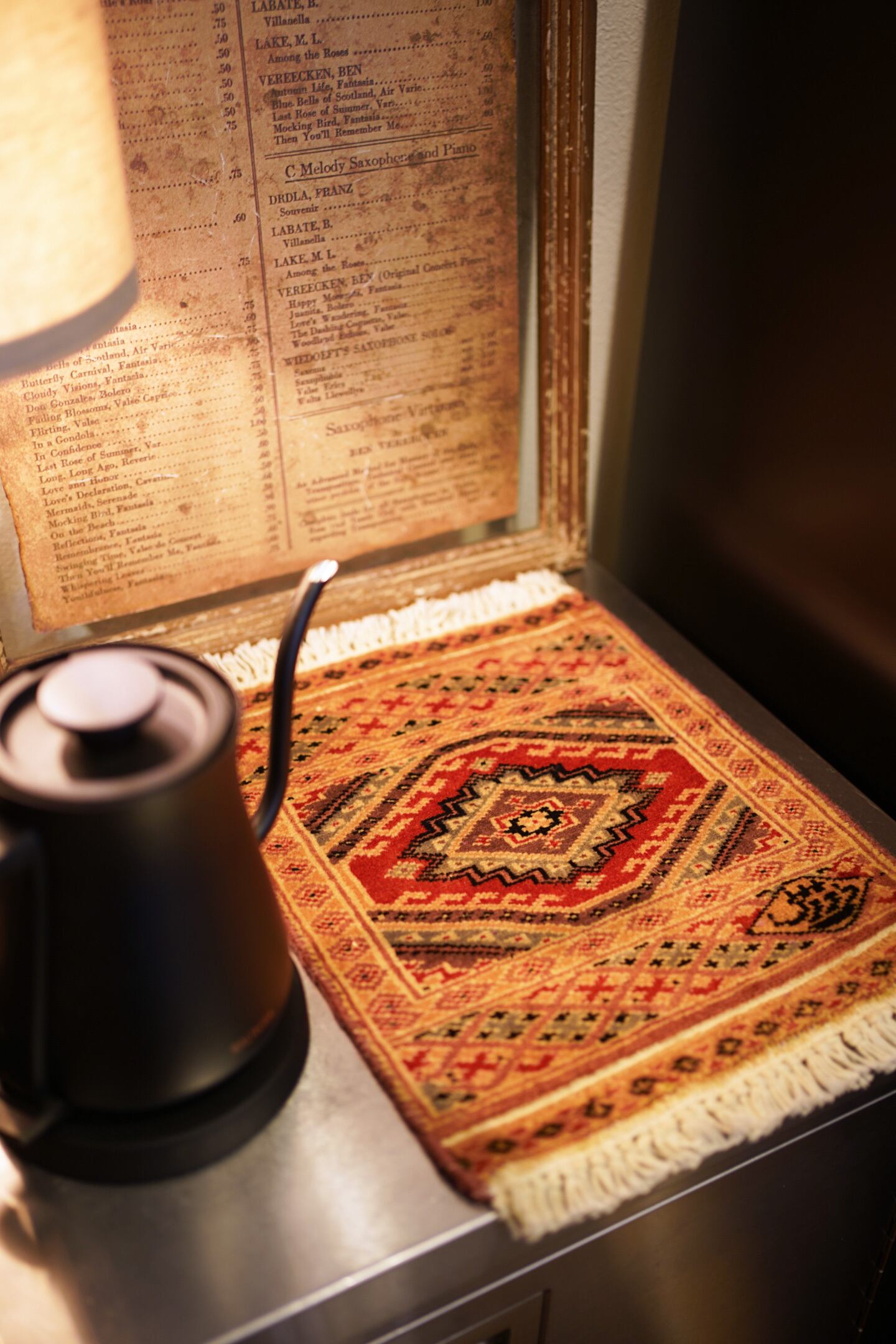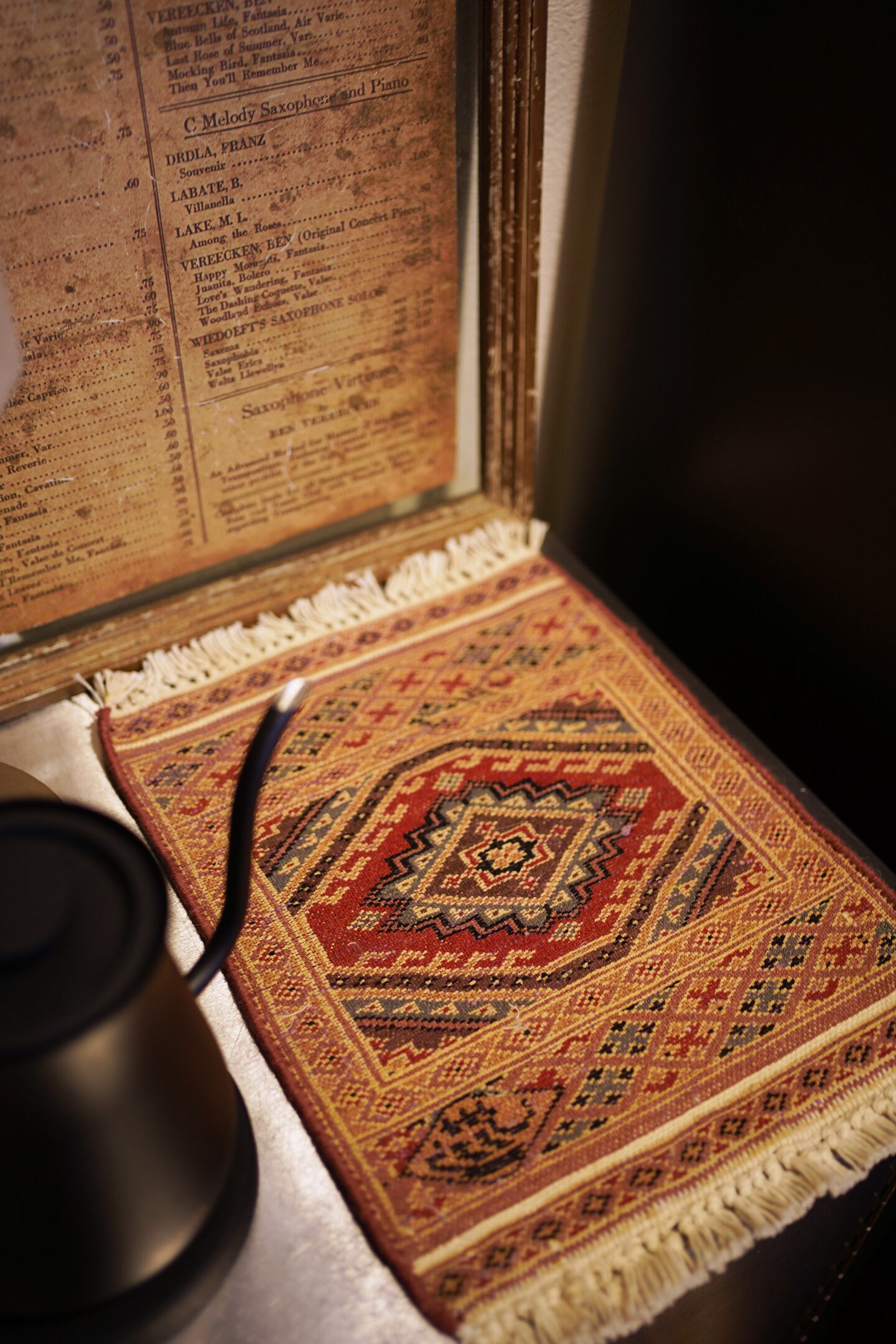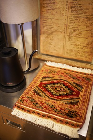 約30年前に織られたパキスタン産のミニラグです。黄身がかったベージュ、マットな赤、くすんだライトブルー、薄いブラウンなど。厚みは5mm程度で、表面はサラふわっと滑らかな肌触りをしています。一部、糸が上に出ている箇所がありますのでお写真最後をご参照ください(ご使用には問題ございません)。それ以外は全体的にコンディションも良好です。棚やテーブルの上に敷いて、小物や花瓶などを乗せればお気に入りの空間がとってもオシャレに。タペストリーとして壁に飾っても素敵かと思います♪