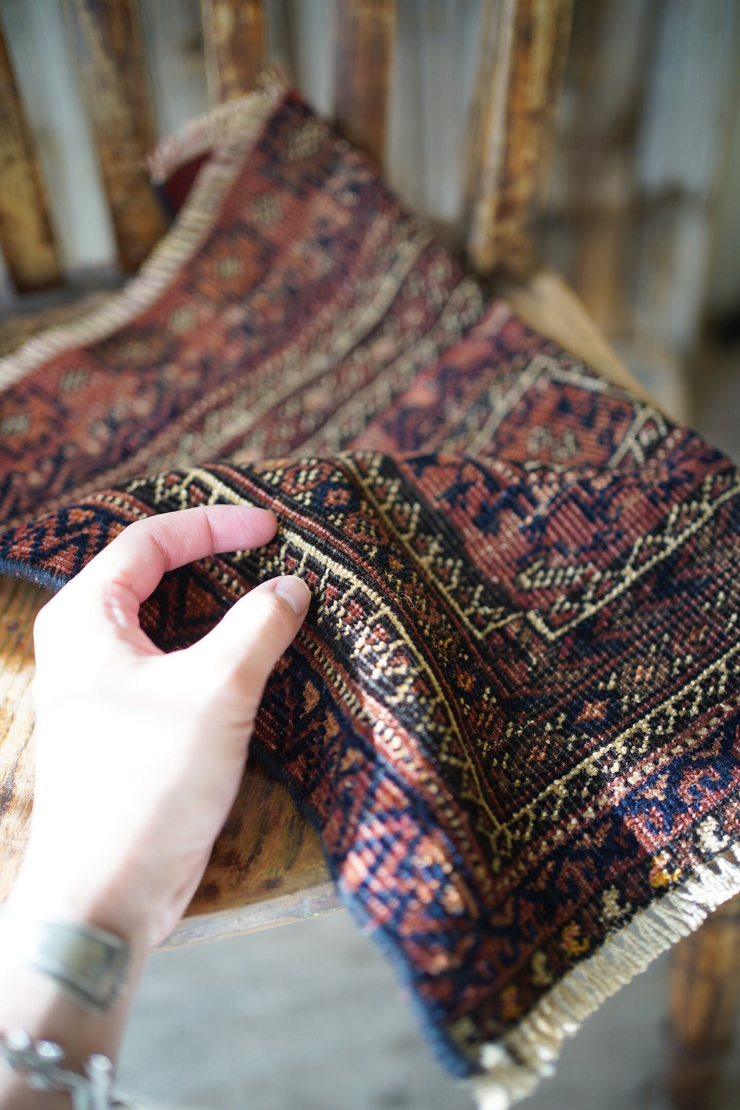 ※ 手織りのヴィンテージのため、粉状の繊維が落ちたり、ウールの抜けが発生することがございます。