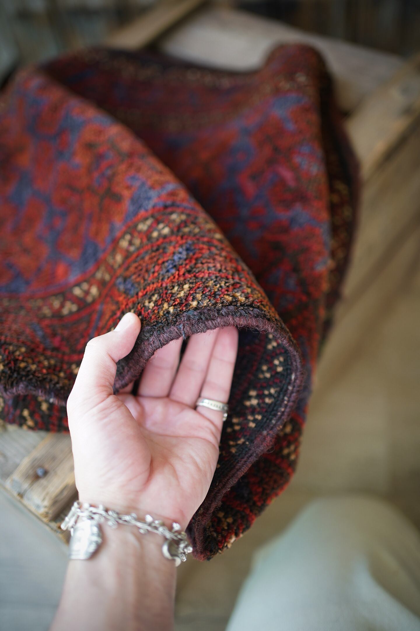 ※ 手織りのヴィンテージのため、粉状の繊維が落ちたり、ウールの抜けが発生することがございます。