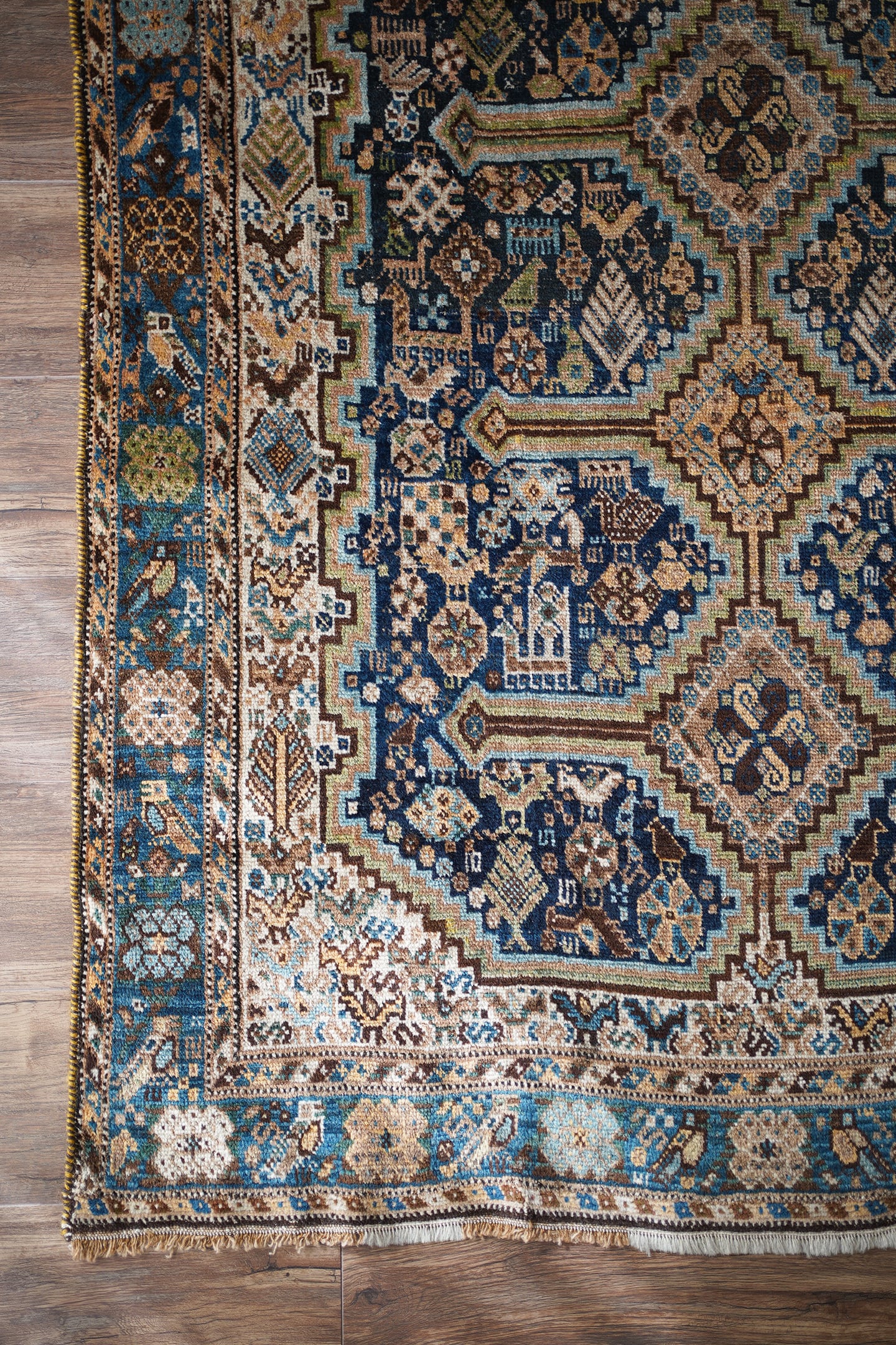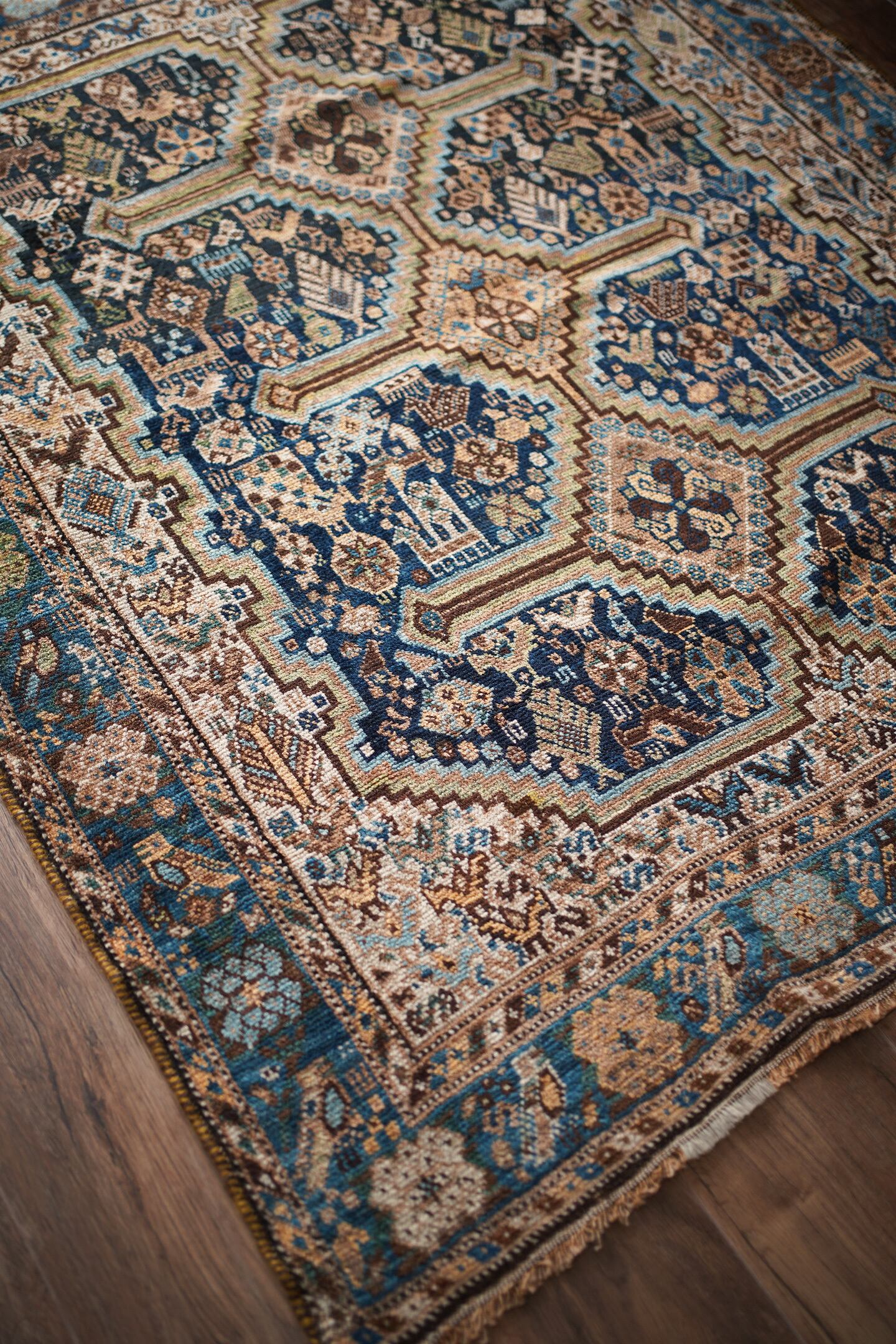 約140年前にイラン南部のハムセ連合によって織られたアンティークラグ。