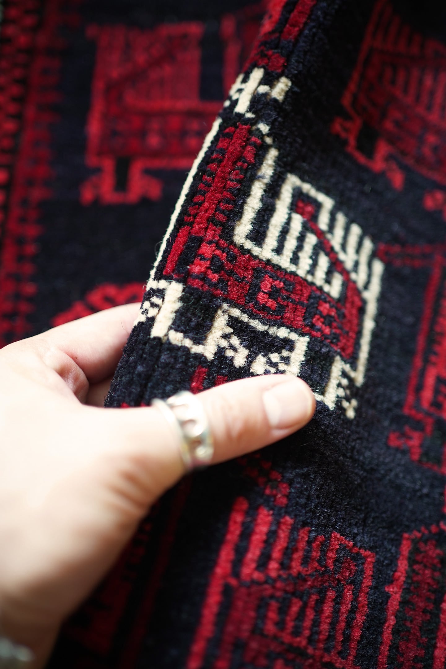 ※ 手織りのヴィンテージのため、粉状の繊維が落ちたり、ウールの抜けが発生することがございます。
