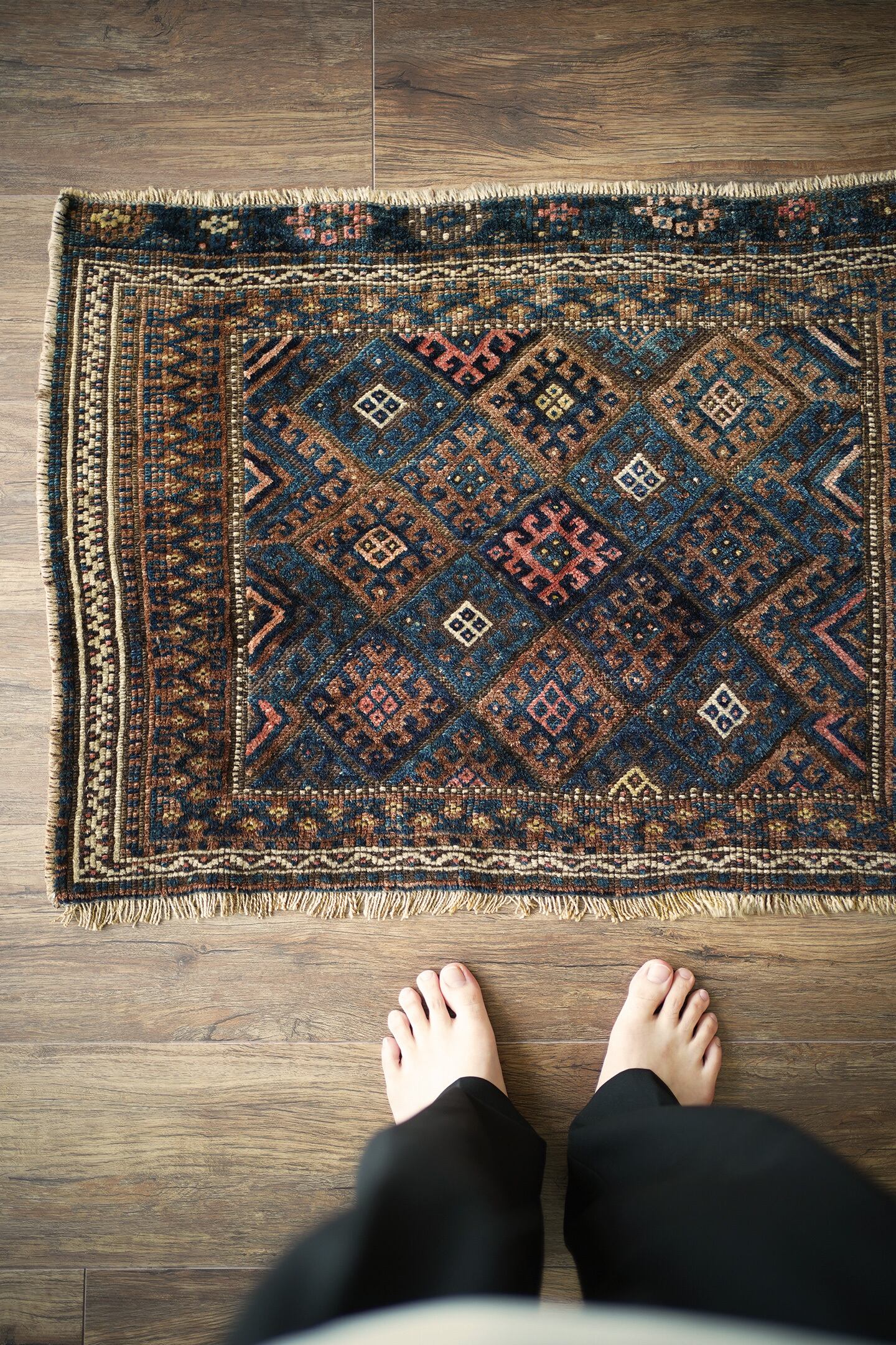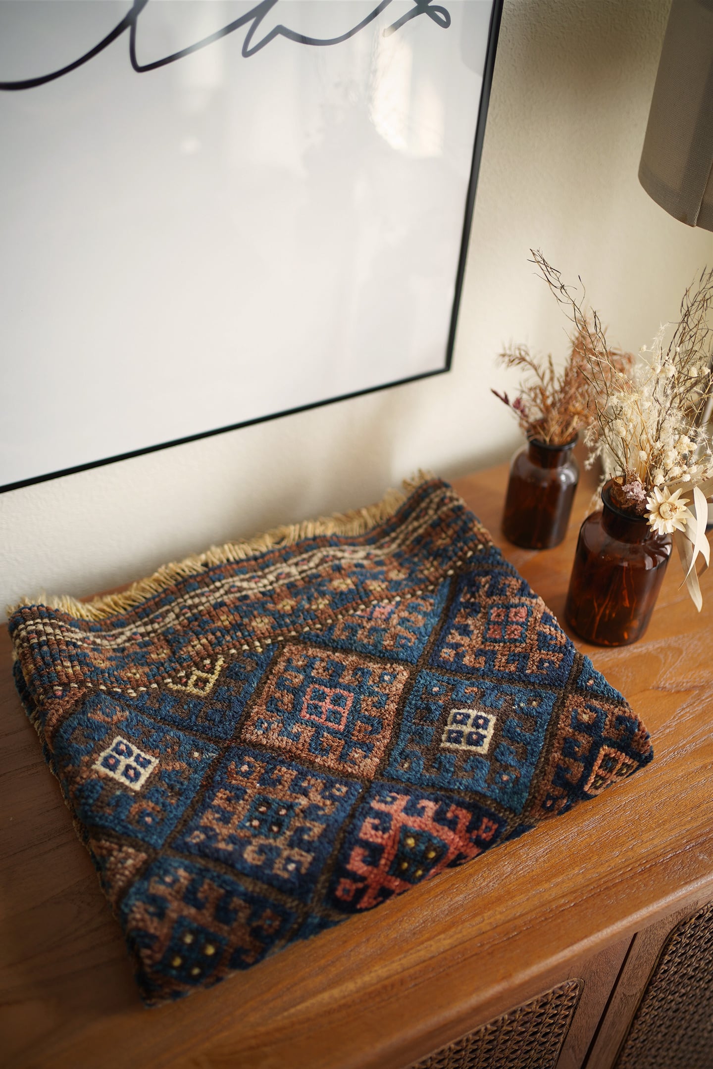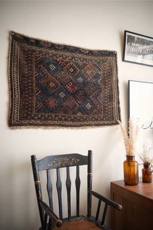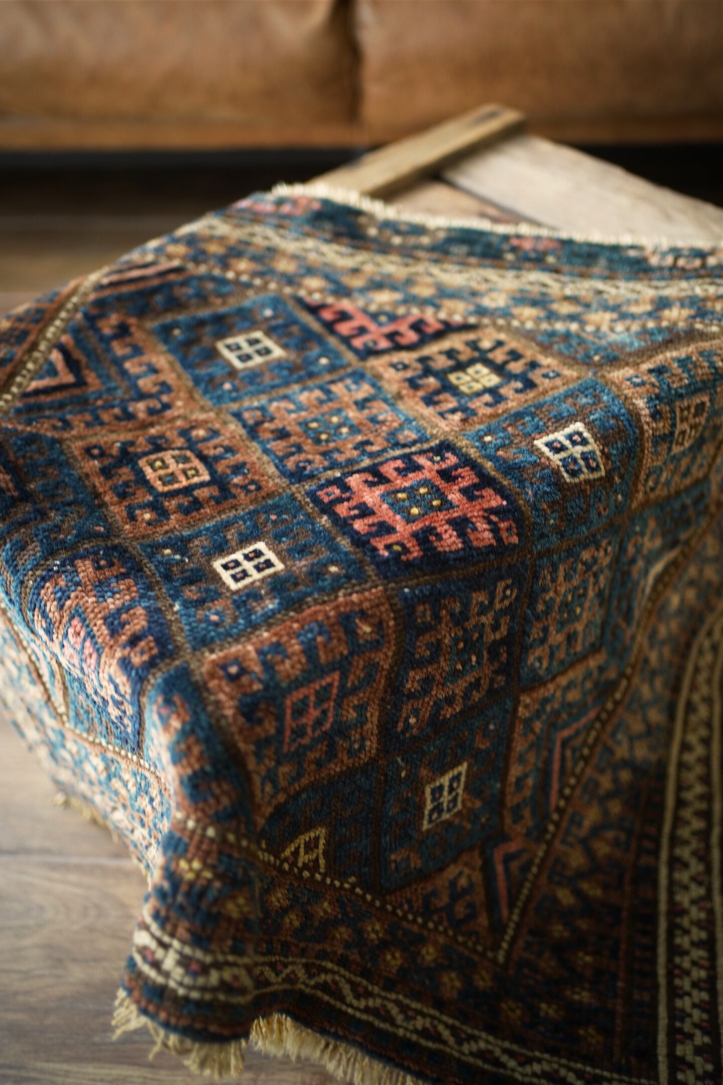 100年〜120年前にジャフクルドというイラン〜イラク〜トルコ国境付近のクルディスタン地方の遊牧民によって織られたバックフェイスです(元々は袋として使用されていたものを表面のみに切り取って作られたラグ)。