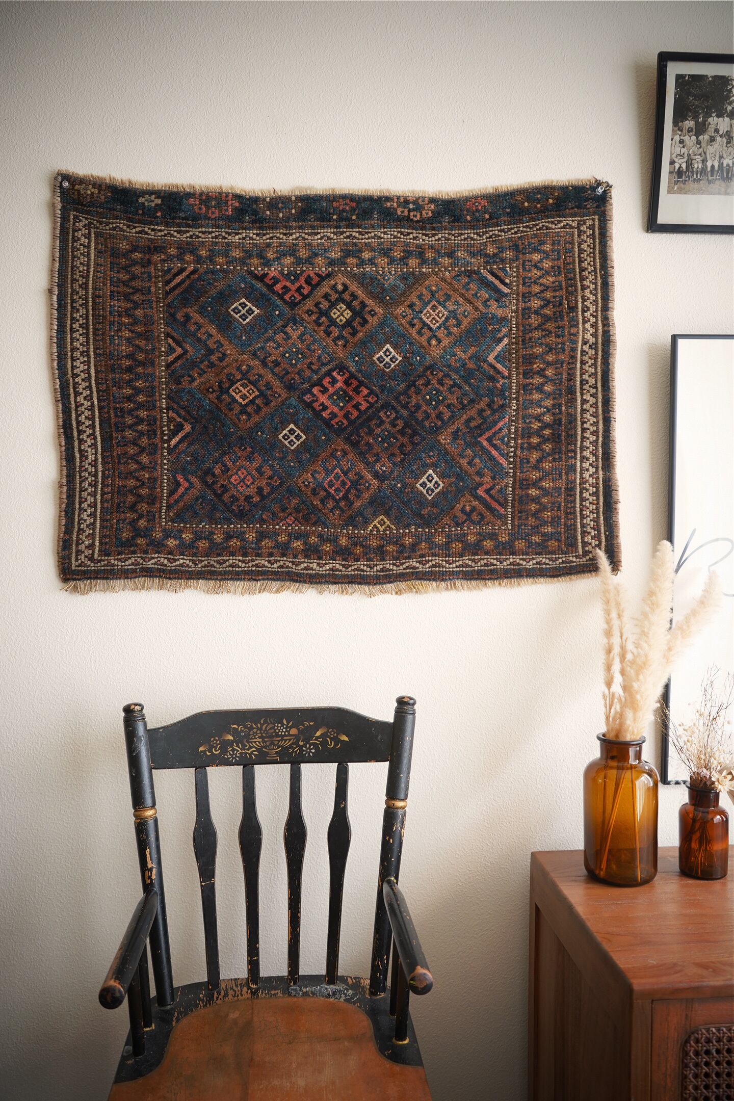 店主の私はジャフクルドのバックフェイスが非常に好きで頻繁に探しているのですが、菱形のバランスや配色などがピンと来るものがなかなかなく、今回やっと好みの一枚に巡り合えました。