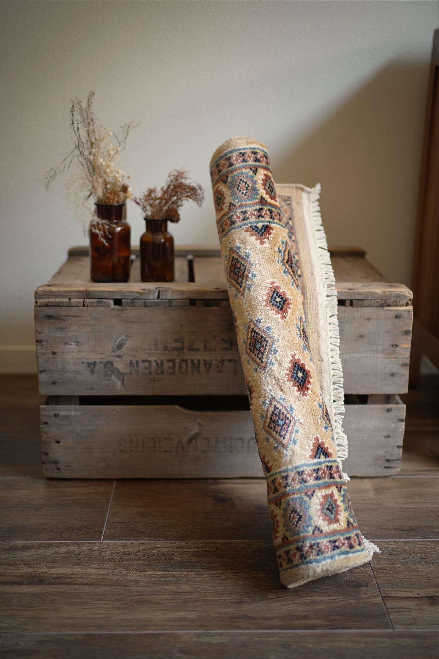 ※ ラグの年代および製造産地については、現地セラーからの情報に基づき記載しております。証明となるものはございませんので、ご了承ください。