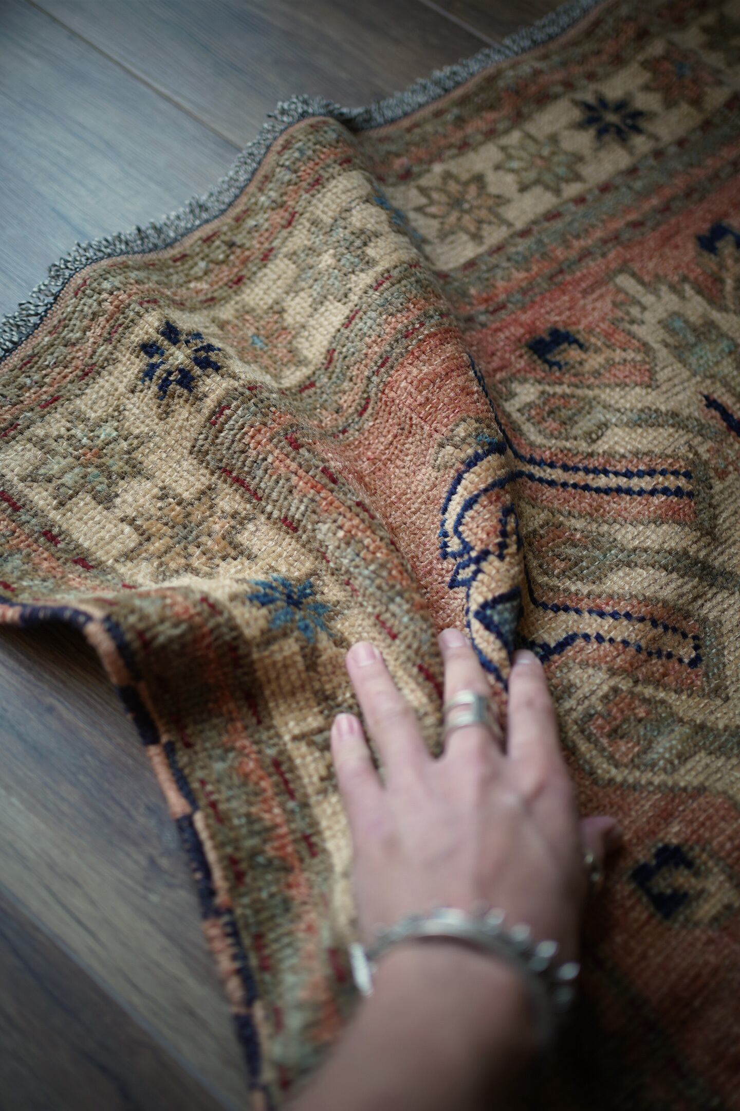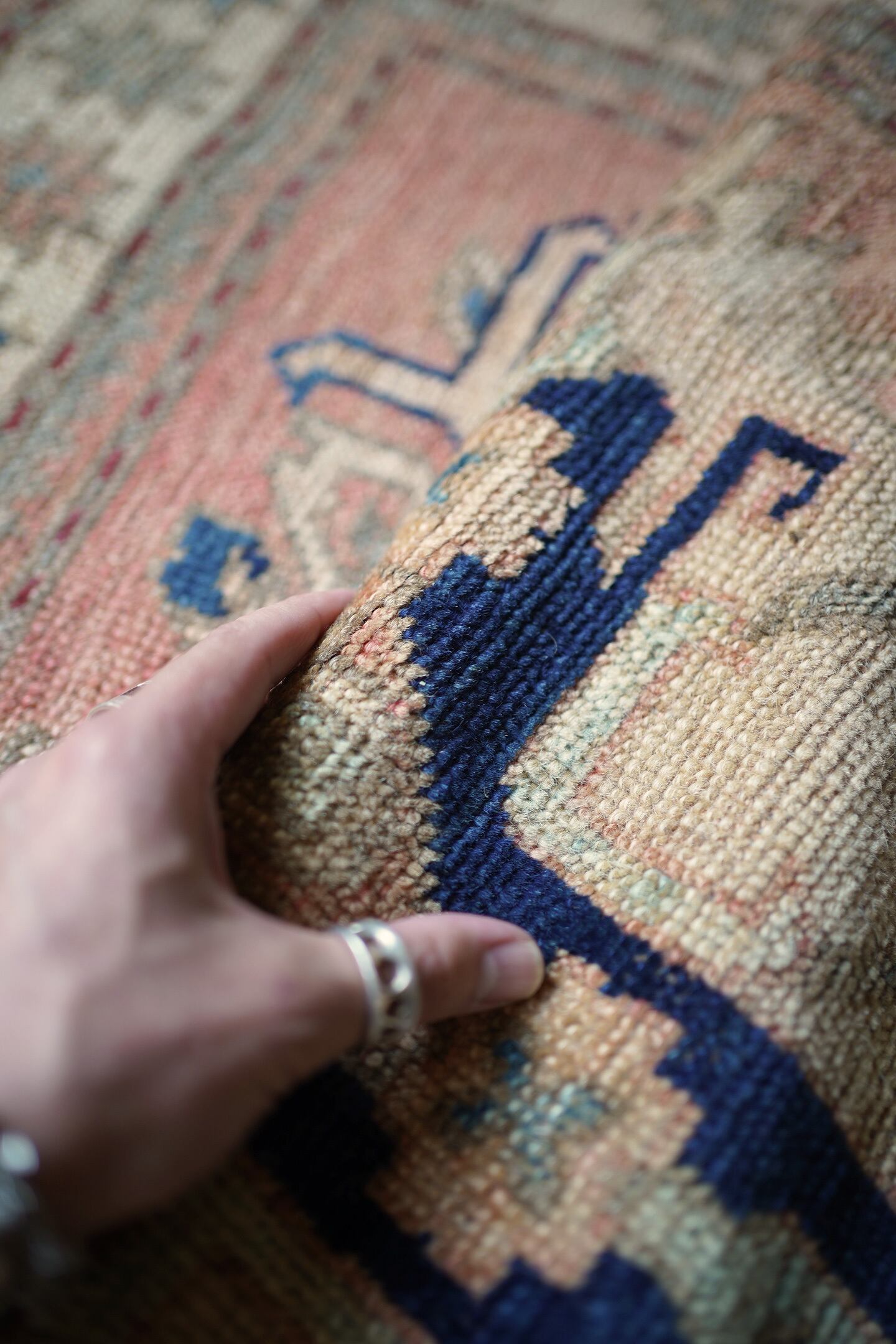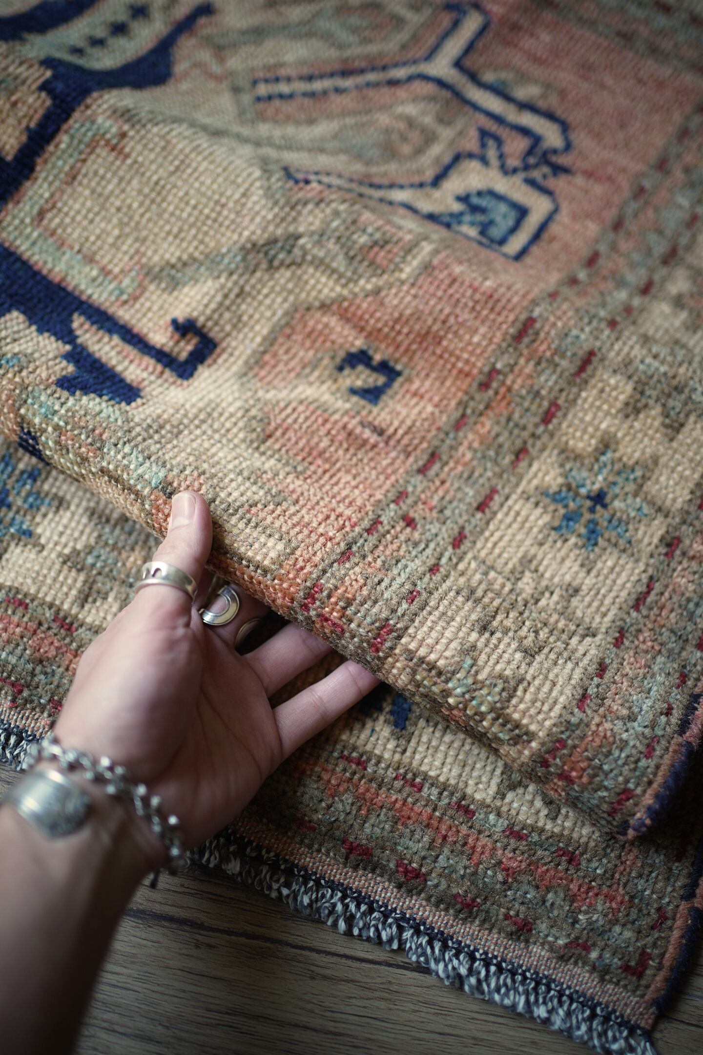 ※ 手織りのヴィンテージのため、粉状の繊維が落ちたり、ウールの抜けが発生することがございます。