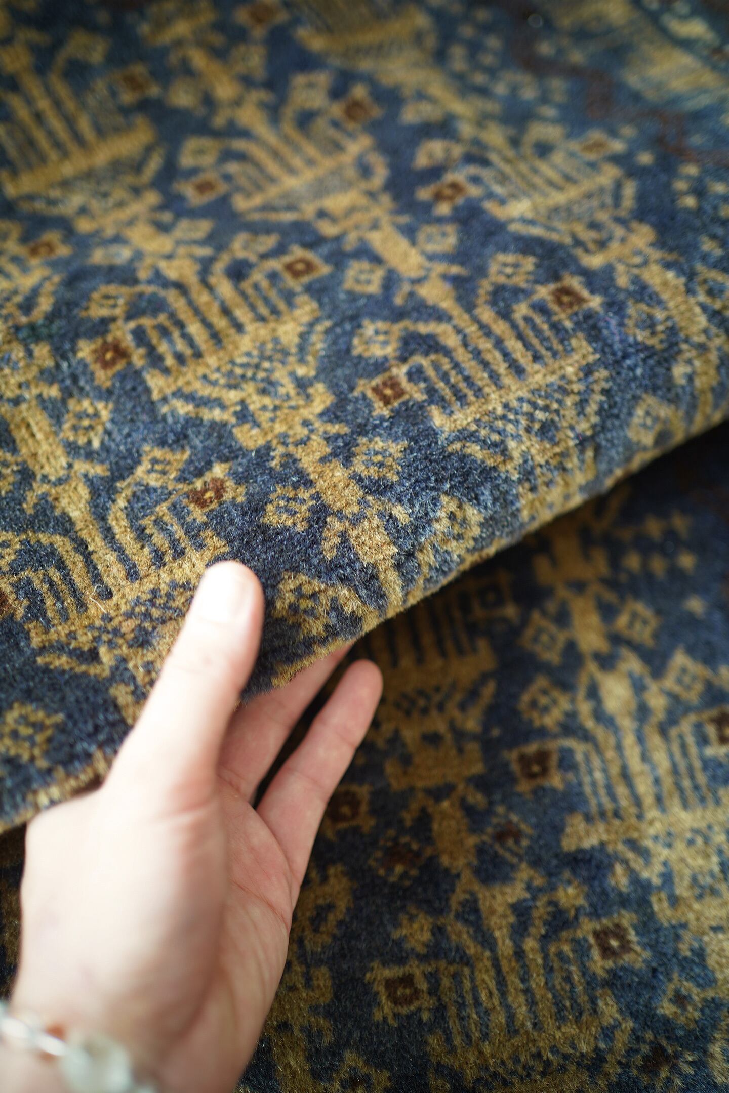 ※ 手織りのヴィンテージのため、粉状の繊維が落ちたり、ウールの抜けが発生することがございます。