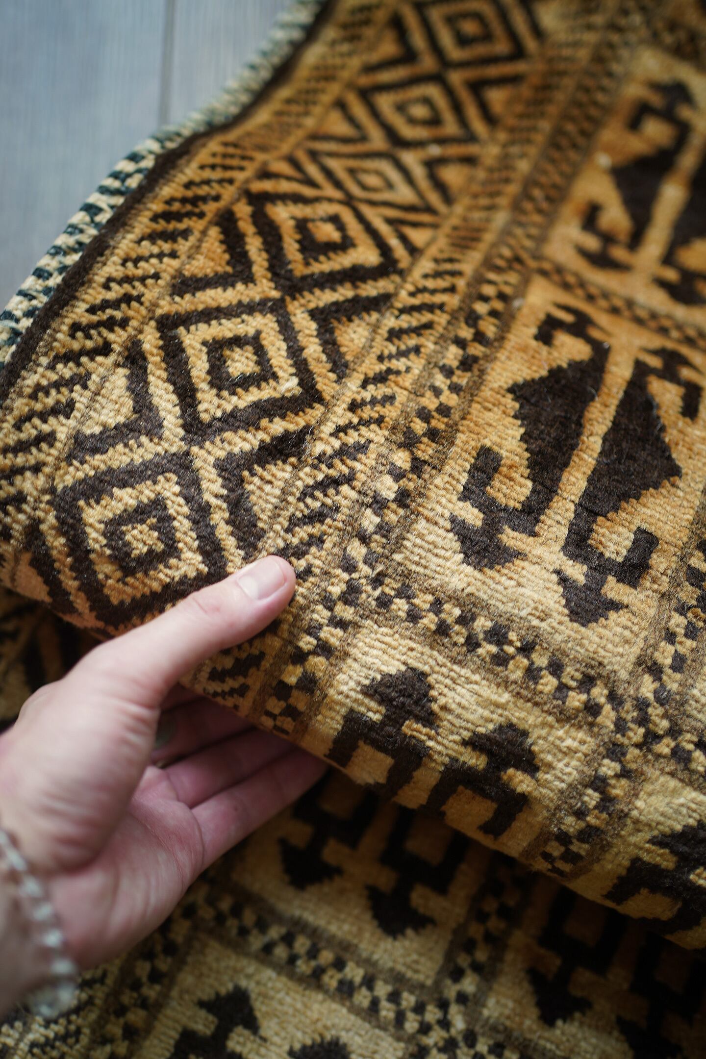 ※ 手織りのヴィンテージのため、粉状の繊維が落ちたり、ウールの抜けが発生することがございます。