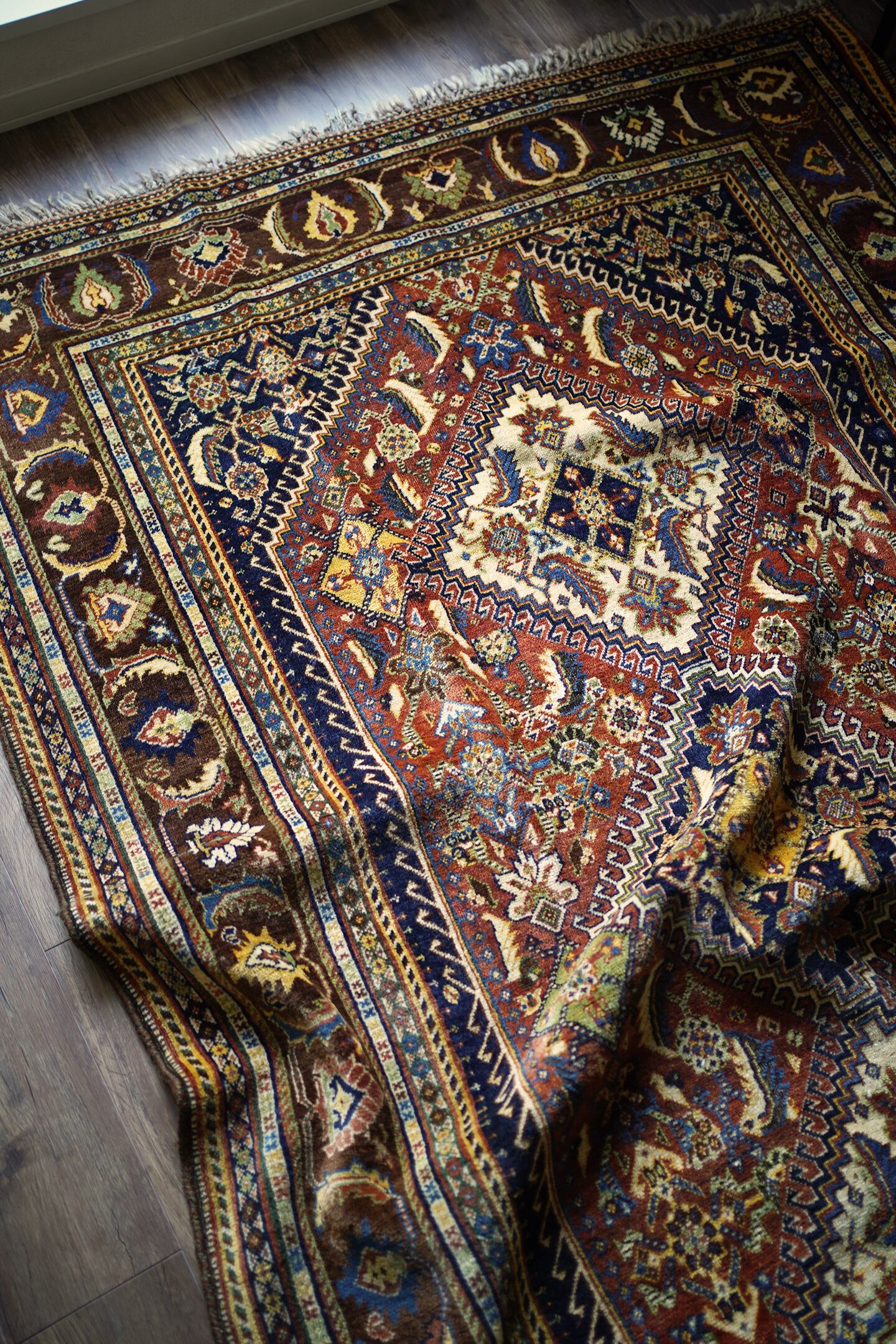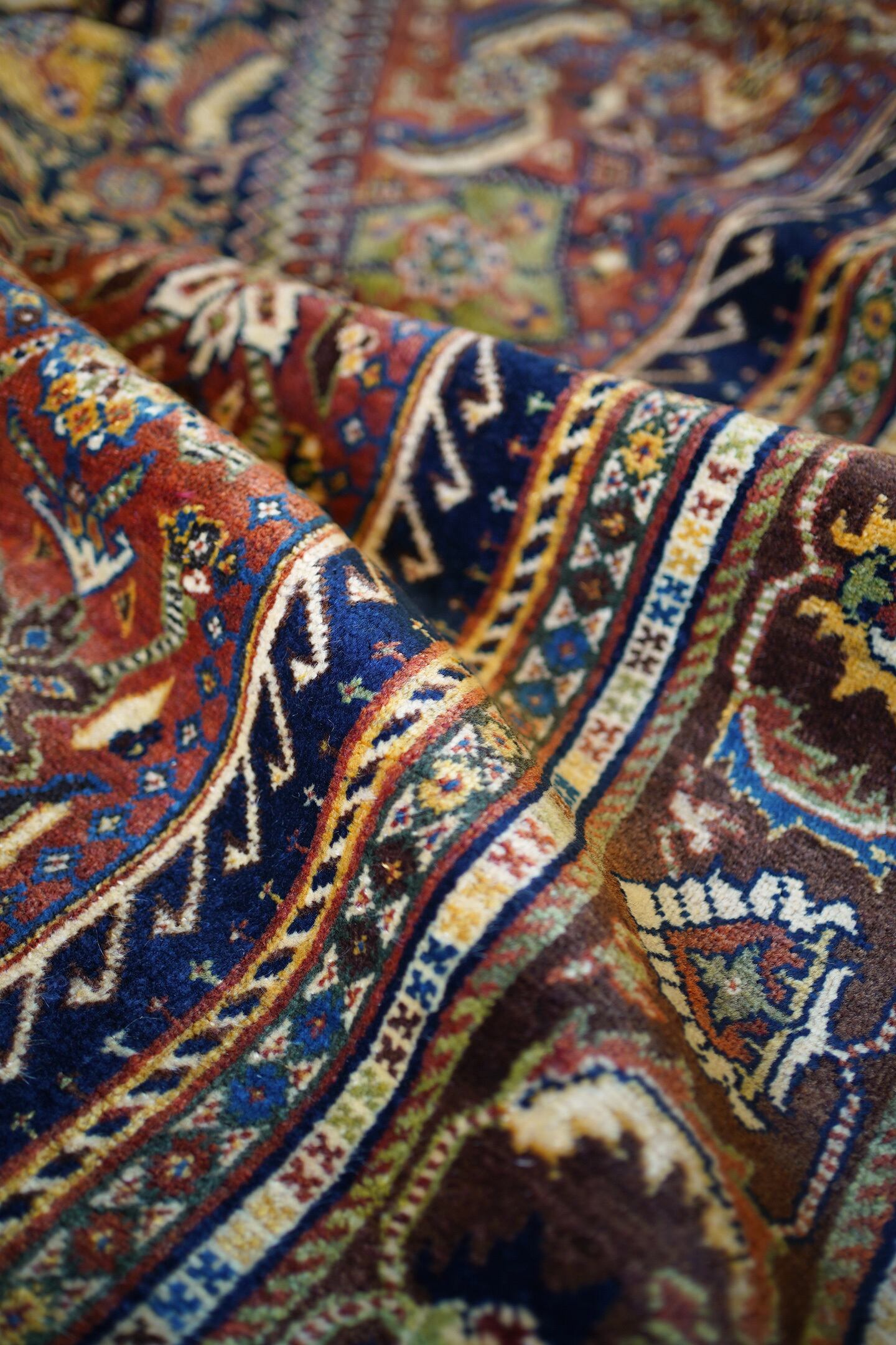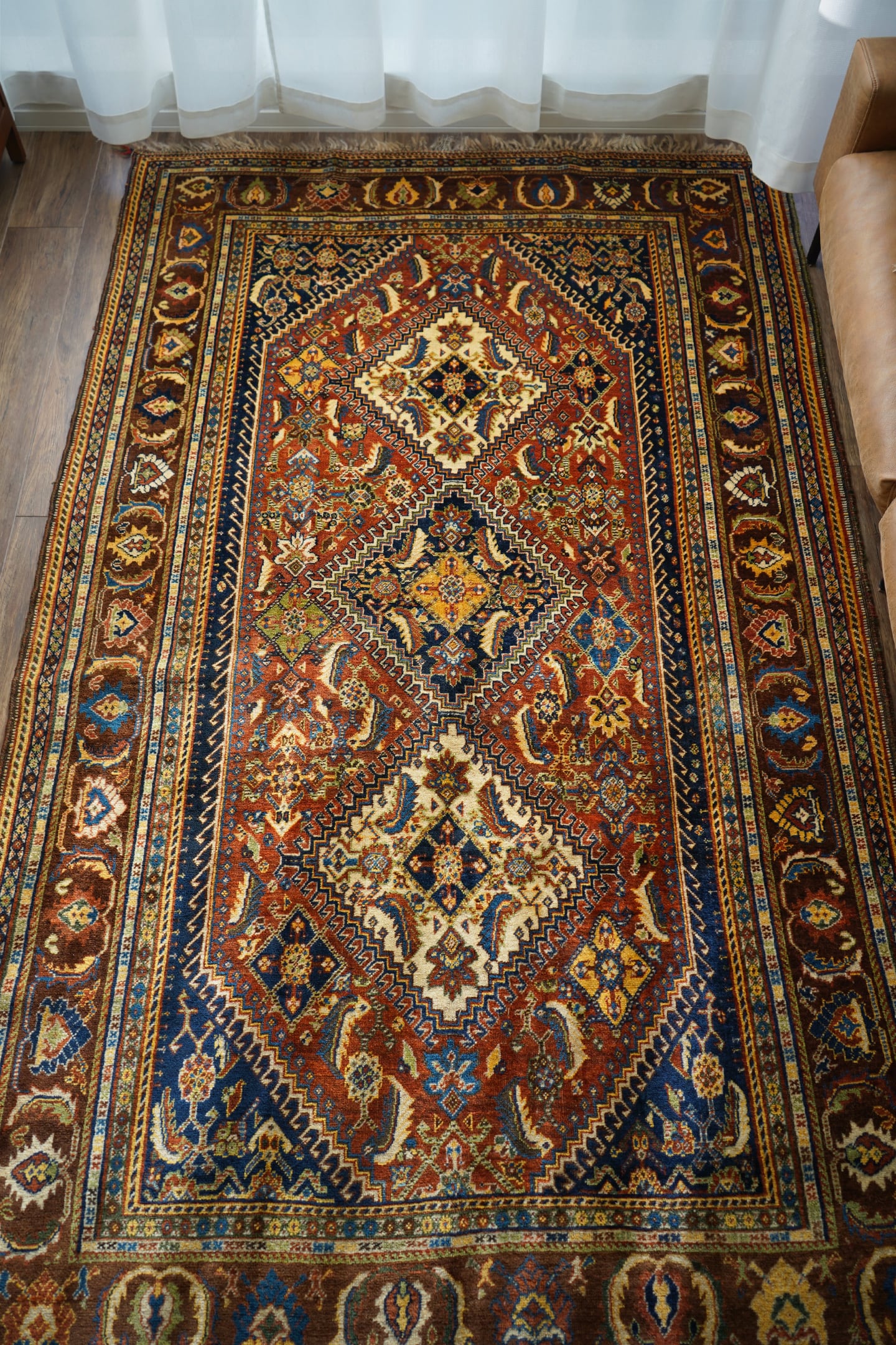 おおよそ120年〜130年前にイラン南西部に居住するカシュガイ族によって織られた歴史あるアンティークラグです。